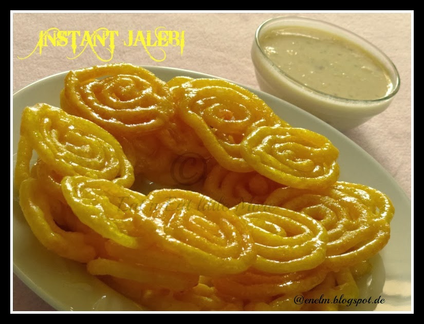Yes then let me make it clear, today's special sweet is mouth melting crispy juicy authentic sweet meat, Jalebi. Yes this sweet was responsible for that song lyrics in the beginning. This is my second attempt and yes, this time they were in perfect shape, crisp, juicy and yummy. The first time when I prepared, the batter was little more runny, hence couldn't get the perfect shapes, but voila.. this time they were awesome with regard to shape even. Jalebi goes well with Rabdi. Here I share the instant jalebi recipe.